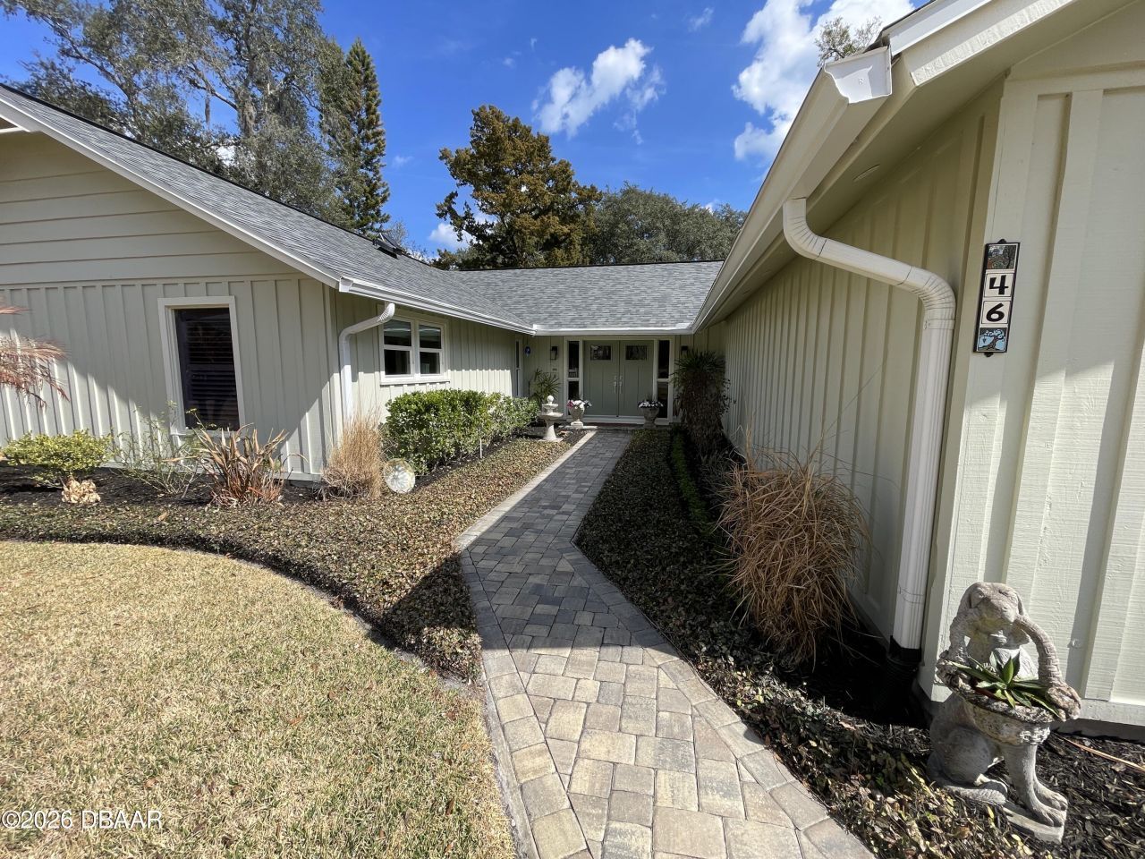 This beautiful home boasts a newer December 2024 roof and is in the highly sought-after Trails neighborhood of Ormond Beach. Tucked away at the end of a quiet cul-de-sac, this immaculate home offers tranquility, space, and timeless charm. From the moment you step through the double front doors into the gracious foyer, you'll feel the thoughtful design and peaceful ambiance that define this exceptional residence. Every room invites you to relax and enjoy the serene surroundings. The beautifully appointed kitchen features abundant cabinetry, expansive counter space, convenient slide-out drawers, and a charming breakfast nook. A large opening from the kitchen to the cozy living room, highlighted by a stunning stone gas fireplace and sliding doors that lead to the picturesque, park-like backyard. Designed for both everyday living and entertaining, the elegant dining room with its large picture window flows seamlessly into the kitchen, living room, and spacious family room. Double pocket doors in in the family room provide flexibility and privacy, making it ideal for a media room, office, or guest space. The desirable split floor plan offers a generously sized primary suite complete with a spa-inspired en-suite bath and a large walk-in closet with custom built-ins. Additional features include Walk-in closets in all bedrooms, a dedicated laundry room with access to the oversized two-car garage and a paver driveway with ample off-street parking, including room for your boat. Step outside and discover your own secret garden complete with a HotSpring Spa. The lush backyard backs up to the private, 5-7 miles of tree-lined walking paths of The Trails and includes two additional structures: a garden shed and a powered, air-conditioned artist/yoga studio, perfect for creative pursuits or peaceful retreats. The Trails clubhouse offers one of the largest and pristine pools in the area. Features include Whole-home generator, Carrier HVAC system with UV light, 500-gallon propane tank servicing the tankless water heater, stove, and converted fireplace. Located just a golf cart ride from The Trails Shopping Center (featuring Publix, Restaurants, and everyday conveniences), and minutes from I-95, beautiful beaches, local parks, the updated YMCA, and the World Class Pictona Pickleball facility. This home is located in one of Ormond Beach's most desirable communities. This is more than a home, it's a lifestyle. Come experience the serenity and charm for yourself. You must see this home in person to fully appreciate.Indoor & patio furnishings are negotiable.
