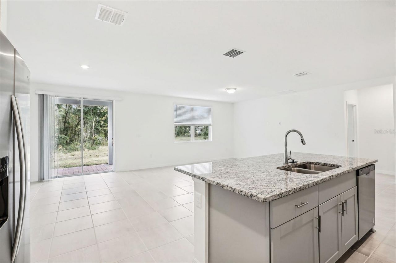 One or more photo(s) has been virtually staged. Move-In Ready New Construction HomePerfect for boating enthusiasts, anglers, and waterfront lifestyle seekers, this property offers the flexibility to create a private dock for year-round enjoyment. Buyers searching for waterfront homes with boat dock potential in Central Florida will love the convenience and added value this feature provides. Enjoy direct water access with the unique opportunity to install your own boat dock or similar fixed or floating structure. This home sits on a spacious 1/4-acre lot that backs to the scenic Palatlakaha River, which flows directly into Lake Harris-offering tranquil views and a natural buffer for added privacy.Discover comfort, style, and energy efficiency in this beautifully designed 1-story, 4-bedroom, 2-bathroom home with 1,840 square feet of living space and a 2-car garage, located in the boutique Fox Pointe community-a quiet enclave of just 42 homesites near US-27 and the Harris Chain of Lakes Boat Ramp.Interior Highlights Grey shaker cabinets with elegant crown molding for a clean, timeless look Granite countertops in both kitchen and bathrooms for durability and style Large format tile flooring in all main living areas; plush carpet in bedrooms for added comfort Stainless steel GAS appliances including range, microwave, dishwasher, and refrigerator Gas Tankless Water Heater and gas dryer hookup for energy-conscious living Washer, dryer, and blinds included-move in with ease!Open-Concept Living Spacious kitchen island with counter-height bar seating-perfect for casual dining or entertaining Kitchen opens to the dining area and expansive Great Room, creating a seamless flow Kitchen sink overlooks the backyard and living space, ideal for hosting and everyday livingEnergy Efficiency & Wellness Energy Star Certified with spray foam insulation and fresh air intake system Designed to reduce allergens, improve indoor air quality, and lower utility bills A healthier, quieter, and more energy-efficient home for modern Florida livingCommunity & Location Perks Fox Pointe amenities include a dog park and open green space for outdoor enjoyment Minutes from Harris Chain of Lakes-boating, fishing, and waterfront fun await