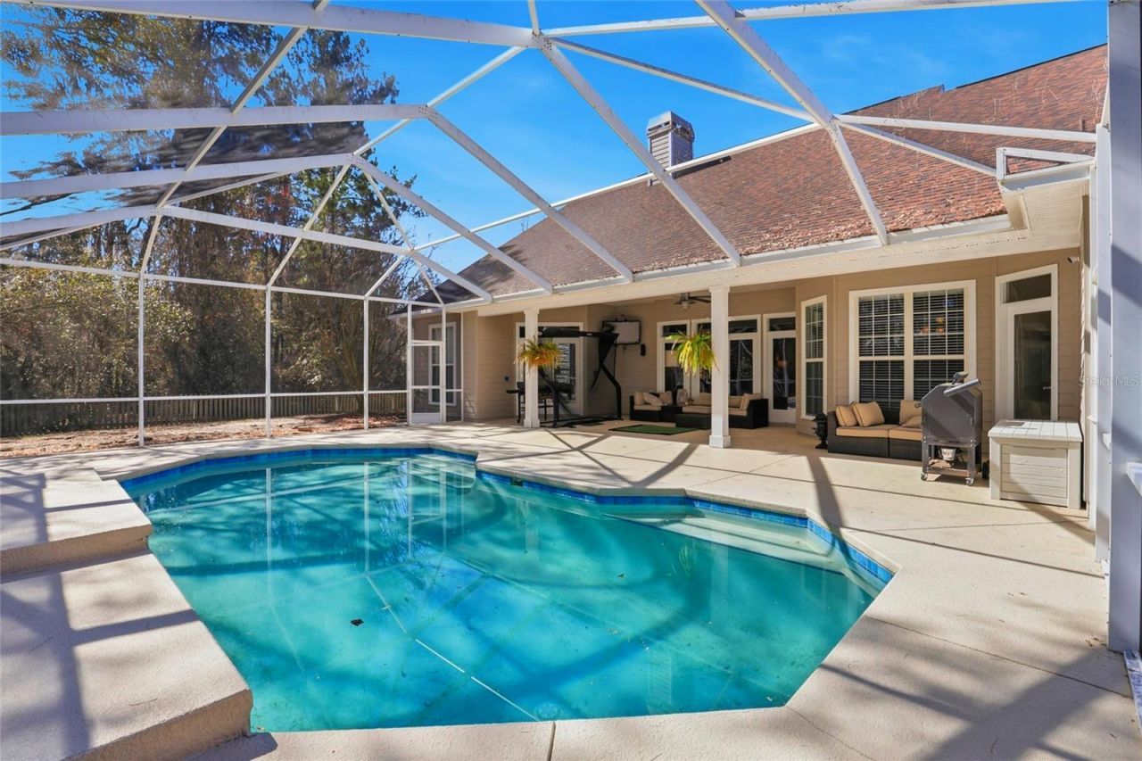 Looking for a 5-bedroom, 3-bath pool home with a private office in the gated Windsor Glenn community? You've found it.Offering nearly 4,000 square feet of refined living space on one of the neighborhood's premier homesites, this residence effortlessly blends scale, comfort, and timeless design.Step inside to soaring ceilings, updated luxury vinyl plank flooring, and a light-filled open-concept layout tailored for both everyday living and elegant entertaining.The grand living room impresses with 14-foot cathedral ceilings, a striking natural gas-burning fireplace flanked by custom built-ins, and a wall of windows overlooking the sparkling pool.The expansive kitchen features granite countertops, stainless steel appliances, abundant cabinetry, and a charming eat-in dining nook, all flowing seamlessly into the spacious formal dining room.Privately positioned off the living area, the primary suite showcases raised ceilings with crown molding, a cozy reading nook, abundant natural light, and direct access to the pool. The updated spa-inspired bath offers a jetted tub, oversized walk-in shower with dual shower heads, and a generous dual-sink vanity - creating a serene retreat.On the opposite side of the home, three generously sized guest bedrooms provide comfort and privacy. Two share a Jack-and-Jill bath, while the third is conveniently located near the full pool bathroom.Near the primary suite, a dedicated office with cathedral ceilings and custom built-ins offers the ideal work-from-home space or private lounge.A spacious laundry room with additional storage is located just off the kitchen. Upstairs, a massive bonus room provides exceptional flexibility - perfect for guests, a media room, or playroom.Out back, relax in your fully screened pool oasis overlooking a fenced yard framed by mature landscaping for exceptional privacy.Offered at $849,900, this remarkable property is just minutes from everything Gainesville has to offer while delivering the space, setting, and sophistication rarely found in one home.