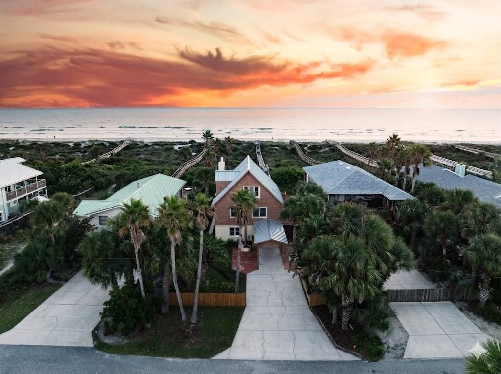 DIRECT OCEAN FRONT 3/3 +bonus room makes you feel like you are always on VACATION! The moment you step inside you are transported back to summer at the beach house of your childhood with lots of recent UPDATES! It has towering vaulted ceilings with walls of glass giving spectacular views of the OCEAN beyond the dunes and EXPANSIVE DECKS where you can breathe in the OCEAN air! Watch the sunrise while you sip your morning coffee on the deck. The entire exterior was FRESH PAINTED in September, with elastomeric on the stucco & Sherwin Williams on the wood, it has newer PAINT inside, BRAND NEW FENCING, recently updated kitchen with NEW CABINETS, NEW QUARTZ counter tops, Built-in GE 9800 FRIDGE, NEW SS OVEN & MICROWAVE, island hood, NEW wood look TILE throughout, Anderson windows, 2 NEW windows facing the ocean, Craftsman doors, 30 yr Steel ROOF replaced in 2023, and recently rebuilt PRIVATE BEACH walk over which is an option that many comparable homes in the neighborhood cannot boast. ALL 3 BATHROOMS have recently been REMODELED and UPDATED. Entire 3rd floor is dedicated to Master Suite-with glass wall for ocean views or close the curtains for privacy, plus catwalk to private 3rd floor balcony. Tongue & groove cedar that has been painted white for an open feel to the vaulted A-frame space that feels massive. There is a bonus room downstairs that would make a great office, extra living space or has room for multiple bunk beds. Door at top of stairs allows you to close off the downstairs living area for guests, kids, etc.. Backyard has room for a pool & TWO OUTDOOR SHOWERS. Lot base elevation is approximately 13??? and ZONE X, meaning lenders will not require flood insurance. There are multiple layers of dunes between the beach and the house, with a new one currently forming, making this one of the best areas to own OCEAN FRONT property in St. Johns County! This would make a spectacular primary home, second home or a VACATION RENTAL in high demand! It???s not currently used as a vacation rental property but was a few years ago, renting for roughly $8-12k per week at the time. Existing termite bond with Naders Pest Raiders. All measurements, dimensions and important info to be verified by buyer.