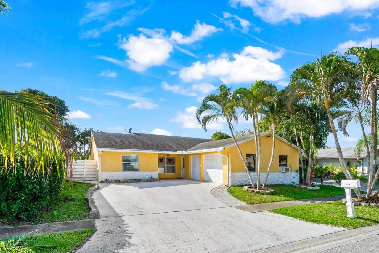 Look no further at this bright and airy three-bedroom two bath plus den home. Located in the center of West Lake Worth this split floor plan home features an extensive driveway, generous living room, spacious eat-in kitchen with a gas stove and stainless-steel appliances. Primary bedroom has a walk-in closet, step-in shower, and a welcoming bathtub. Outside you have a fully fenced in yard with pavers perfect for hosting or relaxing out back with waterfront views in the distance. Other features to take note vaulted ceilings, spacious guest bedrooms, an abundance of closet storage, and large two car garage. This home is a great opportunity to settle quick and conveniently located by shopping and multiple restaurants. You do not want to miss out on your chance to make this your home.