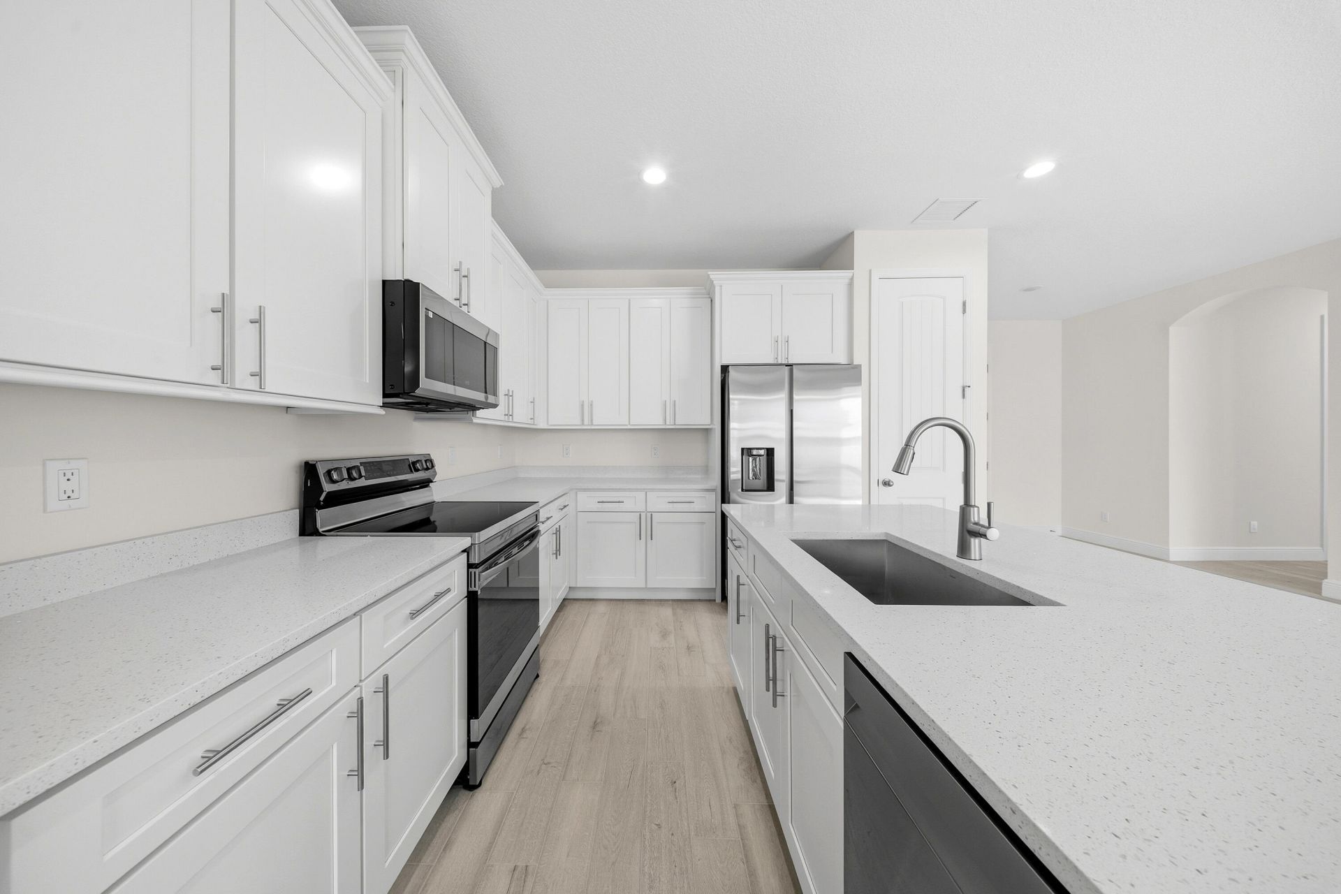 This popular Seaside model features 4 bedrooms and 2 bathrooms and situated in Indian River Estates. This home has a stunning kitchen with 42 inch white shaker cabinets with soft close doors and drawers, quartz countertops, and stainless steel appliances including the fridge. This home has 8 foot doors and plank tile throughout and stacked stone on the exterior. The master bathroom has his and hers sinks and an enormous shower with two shower heads and two shower valves and a frameless glass enclosure. The upgraded and oversized shower tile is run all the way to the ceiling for a spa like feel. This home is loaded with upgrades and one of only a few homes left from Carharp Homes in this community.