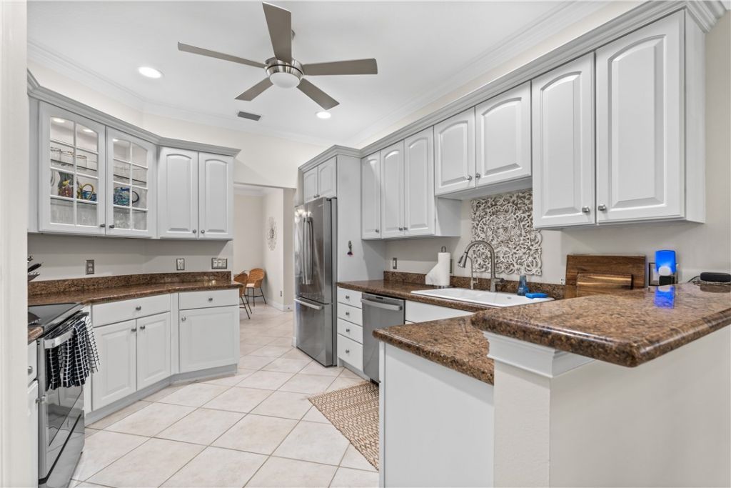 Experience the easy sophistication of Bent Pine, where your backyard is essentially the gateway to the fairway. This home balances modern updates w/a lock-and-leave lifestyle, perfect for those who prefer the clubhouse over a chore list. Enjoy a morning coffee under the new sun shade on your expanded outdoor patio, then stroll over to the newly renovated facilities. Inside, the 23 kitchen appls, granite counters, & white cabinetry offer a fresh, clean aesthetic. From tray ceilings & crown moldings to new BR carpets, its a refined retreat designed for golfers who actually want time to play.