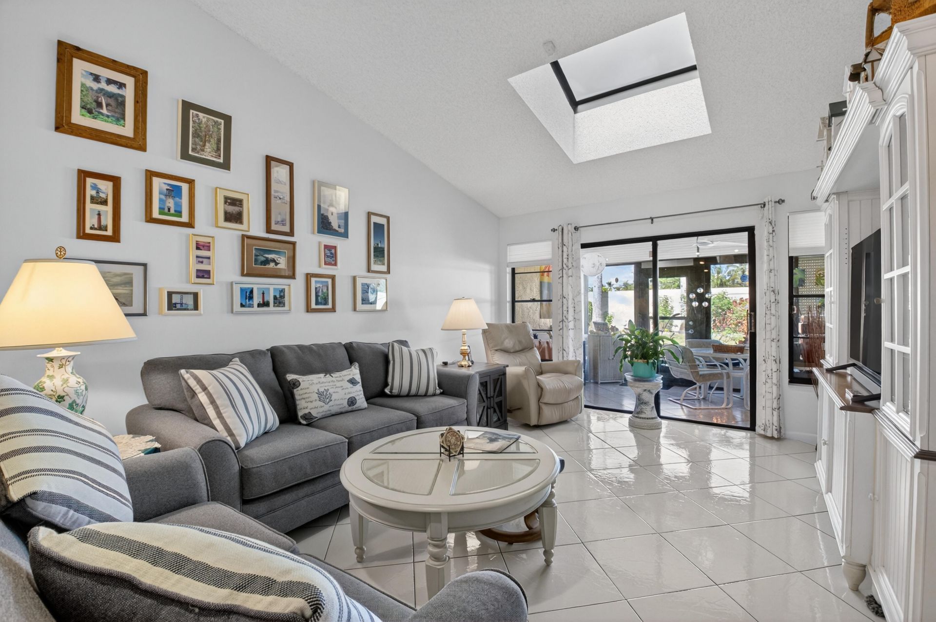 PRICE SLASHED for quick sale! Brand new AC just installed! Move right into this delightful villa in desirable Palm Chase Lakes! Elegant home is tiled throughout with vaulted ceilings & skylights and features renovated kitchen with quartz counters, tile backsplash, pull out drawers & newer appliances. Lovely landscaping. Enjoy the idyllic setting on your enclosed patio! Living room wall has been extended 6 feet and the 3rd bedroom is used as a den/study. This highly desirable active community features wide-open landscaped outdoor spaces with walking/biking trails. Palm Chase Lakes is an active 55+ community w/ resort style amenities featuring magnificent pool and spa, tennis, pickleball, shuffleboard, social hall+++. Walking distance to worship!