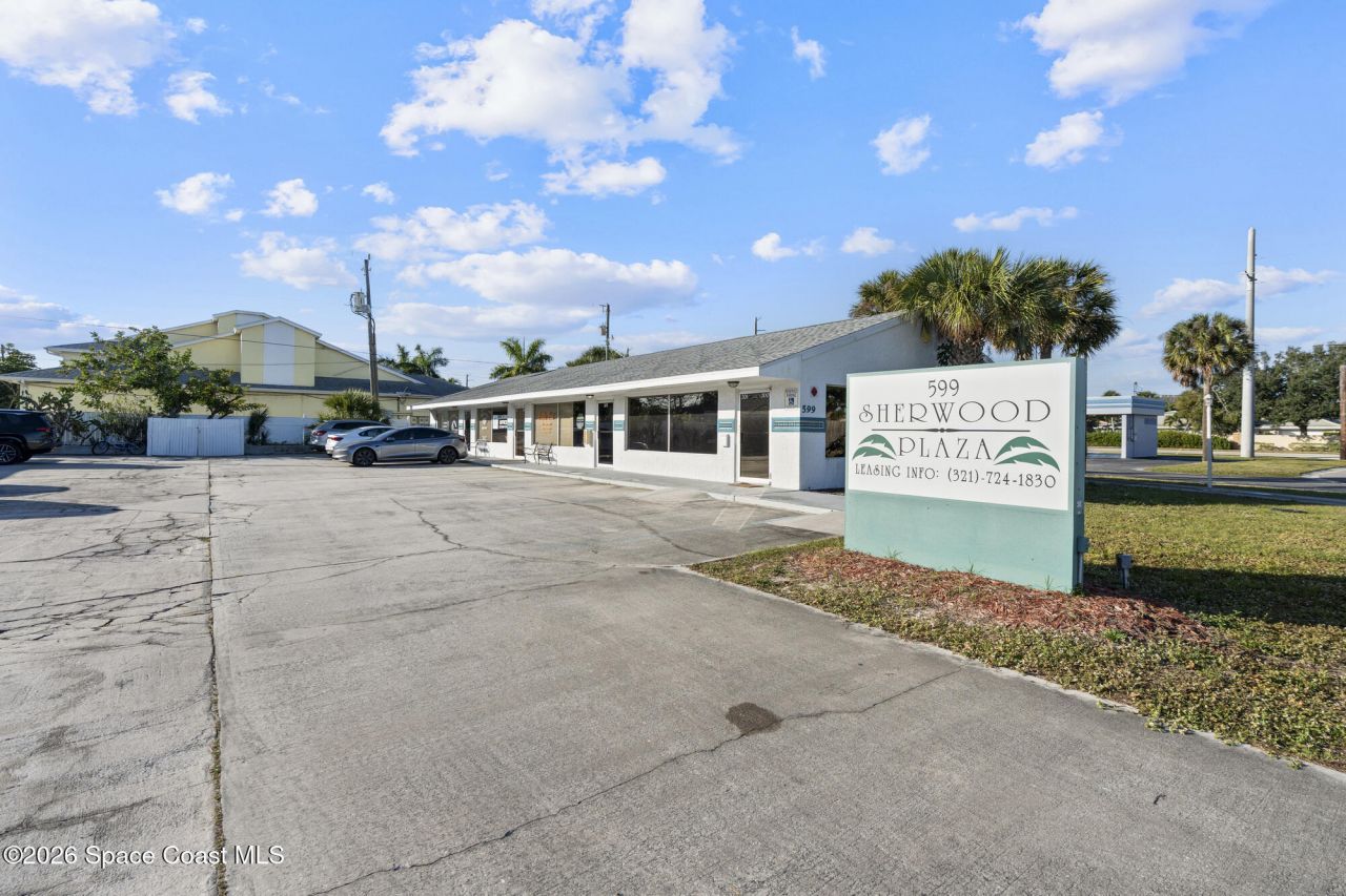 599 Sherwood Avenue is a 5,951 SF multi-tenant office building on 0.41 acres in Satellite Beach, FL, with 5,411 SF of gross leasable area. The single-story layout includes 16 suites, each with private entrances, flexible configurations, restrooms, and direct parking. Located just off South Patrick Drive and a block from A1A, its minutes from Patrick Space Force Base, Cape Canaveral, and the beach. Currently 81.5% occupied (13 of 16 suites), tenants include wellness, beauty, professional services, and boutique retail. Priced at $1.4M (~$235/SF), it offers stable income with lease-up potential.