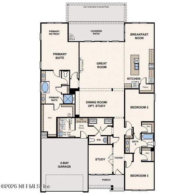 Welcome to the River Birch, a single-story floor plan with 3 bedrooms and 3 baths! From the generous front porch, a long foyer leads to a dining room, a great room with direct access to a covered patio, and a well-appointed kitchen with a walk-in pantry and breakfast nook. You'll also appreciate a private study and two secondary bedrooms--each with a walk-in closet and sharing a Jack-and-Jill bath. Secluded at the back of the home, a lavish owner's suite is accentuated by a roomy walk-in closet and a deluxe attached bath. Standard 3 car garage.