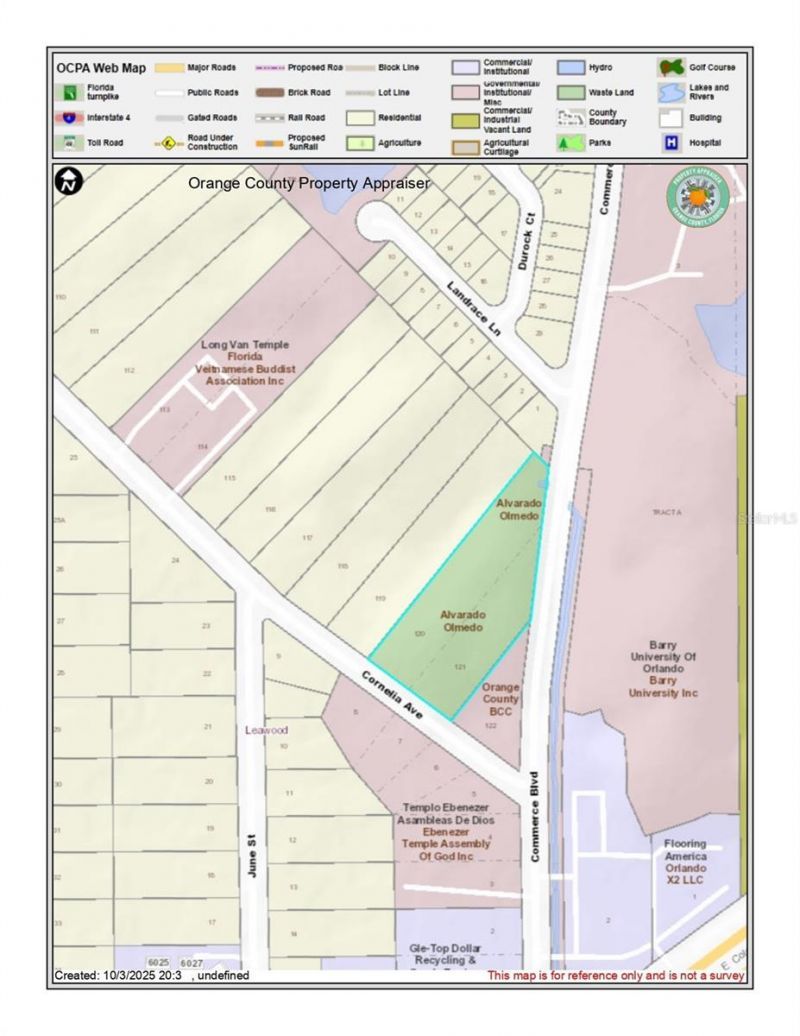 Discover the Perfect Blend of Nature and Opportunity!Spacious 2.14-acre residential lot located at 6117 Cornelia Ave, Orlando, FL - a rare find offering both privacy and natural beauty in one of Orlando's most accessible areas. Surrounded by mature trees and lush landscapes, this property provides a serene setting for your custom dream home or eco-friendly residential project.A recent Environmental Assessment Report (B&B Ecology, October 2025) confirms the land features approximately 0.46 acres of uplands and 1.68 acres of medium-quality freshwater forested wetlands, creating a unique balance of buildable area and natural conservation.Enjoy easy access to major roads, schools, and shopping centers while maintaining the peace and charm of a natural environment.? Zoning: R-1A - Residential/Agricultural? Prime Location: Near Commerce Blvd & major roadways? Endless Potential: Perfect for a sustainable, nature-inspired lifestyle