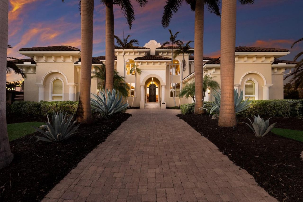 Remarkable, elevated waterfront residence ideally positioned in the prestigious Bird Key neighborhood. Custom built in 2005 by renowned builder Steve Murray of Murray Homes, it reflects exceptional craftsmanship, structural integrity, and enduring quality. Purposefully designed to maximize its setting on the wider Dolphin waterway, just a few homes from open Sarasota Bay, the property offers both protected dockage and quick bay access. With undeniable presence, the home stands tall and commanding, defined by strong architectural lines. A long, paved driveway, framed by six striking Royal Palms, enhances the sense of scale on arrival. Inside, soaring 23-foot ceilings immediately reveal the home's true volume. The thoughtfully designed floor plan allows the residence to live grandly while still offering intimate spaces for everyday comfort. The chef's kitchen, with breakfast bar and center island, flows seamlessly into the family room and informal dining area. A formal living room with decorative natural stone fireplace opens through French doors to the water facing terrace, while the formal dining room balances its dramatic ceiling height with an inviting and intimate ambiance. The first-floor primary suite offers terrace access, an en-suite bath, large walk-in closet, coffee bar, and beverage refrigerator. A solid wooden staircase leads upstairs to a second primary suite featuring dual walk-in closets, en-suite bath, coffee bar, beverage refrigerator, and a private water-facing terrace perfect for sunrise views over the canal and bay. An additional en-suite guest bedroom is privately situated upstairs. A fourth bedroom, currently used as an office with built-ins and a Murphy bed, opens through French doors to a waterfront terrace. Outdoor living is equally impressive in both scale and design with a fully equipped outdoor kitchen, generous covered seating areas, fire pit, and a 30-foot pool with spillover spa and programmable lighting. The dock features 20,000 lb. and 5,000 lb. boat lifts with direct access to Sarasota Bay via the wide Dolphin waterway. The property includes two full two-car garages with direct interior access. With the added benefit of a new in 2025 roof, this residence is built strong, elevated, and designed to impress, combining commanding architecture with a prime boating location. Living on Bird Key places you minutes from downtown Sarasota, St. Armands Circle, Lido Beach, and the soon-to-reopen Bird Key Yacht Club, anticipated in 2026 as one of Sarasota's premier destinations for boating, tennis, dining, and social life.