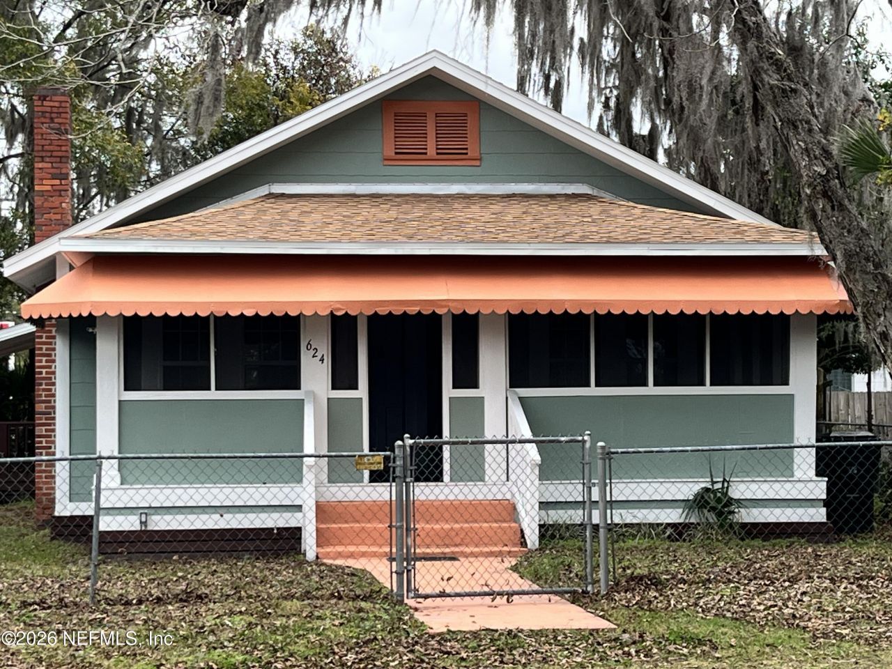 Totally renovated, this adorable bungalow is ready for you to call it Home. Features include open living area and kitchen, three full bedrooms with ample closet space, inside laundry area, and a 10 x 24 screened front porch. Situated on a completely chain link fenced oversized corner lot with driveway gate and walk gate. Brand new roof with five year warranty. All new wiring including switches and outlets. Most light fixtures are new, plumbing has been updated, new smoke detectors. Laminate flooring throughout the house with 1/2'' plywood subfloor. Freshly painted kitchen cabinets with new pulls and hinges. Entire exterior and interior professionally prepped and painted. Put this one on your ''must see'' list.
