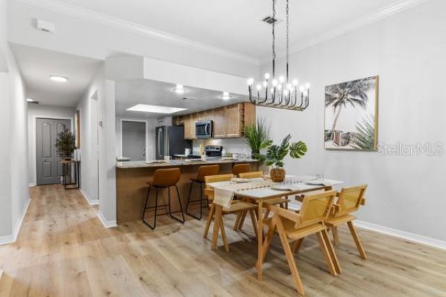 One or more photo(s) has been virtually staged. Discover the opportunity to claim a beautifully reimagined 2BR/2BA corner unit single-family attached home with an unobstructed front-row view of the 3rd hole at Turkey Creek Golf Course. Renovated with care and sophistication, this residence showcases a fresh modern aesthetic-new luxury vinyl plank flooring, crisp interior paint, contemporary LED lighting, and stylish ceiling fans all create a bright, inviting atmosphere. The kitchen stands out, offering extensive granite counter space and an impressive amount of soft-close, real wood cabinetry and drawers, and an open counter bar making both cooking and entertaining effortless. The kitchen flows seamlessly into the great room, where two expansive energy-efficient skylights and triple French doors invite natural light from every angle and frame serene views of the outdoors. Step onto the screened lanai and enjoy a peaceful morning coffee or unwind in the evening while overlooking the lush green course. The primary suite is a quiet retreat with tranquil golf course vistas, a walk-in closet, and a newly transformed en-suite bathroom featuring a stunning tiled shower and granite-topped vanity. An oversized two-car garage adds convenience and storage flexibility. Built with solid concrete block and stucco-with concrete block common walls for enhanced soundproofing-this home offers exceptional durability and low-maintenance living. The HOA covers exterior and roof maintenance, as well as, exterior insurance. Recent upgrades including a 2021 roof and newly stained and sealed driveway further contribute to long-term peace of mind. Nestled between Gainesville and Alachua, Turkey Creek offers unmatched convenience to the thriving San Felasco Tech Park, numerous shopping and dining options, and quick access to UF, Shands, the VA, and I-75. Residents enjoy an array of lifestyle amenities: an 18-hole golf course and practice facility, clubhouse with restaurant, sparkling pool, tennis and pickleball courts, and a spacious playground. This is more than a home-it's a lifestyle of comfort, recreation, and modern elegance.