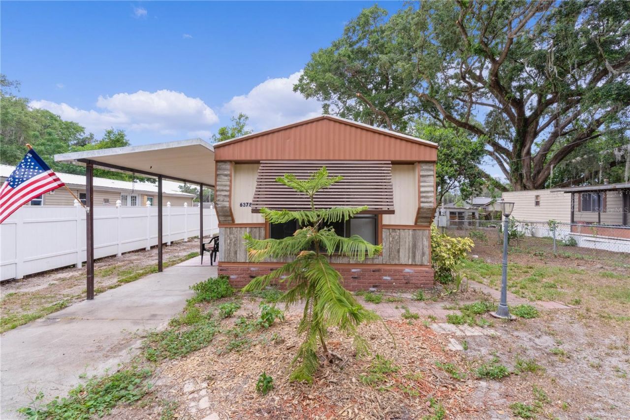 NO lot rent, fenced yard, enclosed lanai - Minutes from The Villages! This fully furnished single-wide blends affordability and freedom. This home offers a unique blend of comfort, convenience, and character. The exterior features durable metal siding, a matching metal roof, carport, central A/C, and indoor laundry. Step inside to a spacious vaulted living area with a ceiling fan, creating an open and airy feel. The eat-in kitchen includes a breakfast bar with overhead display storage. You'll appreciate the wood cabinetry, double sink, and a lighted ceiling fan for added comfort. This home offers two nicely sized bedrooms, both with ceiling fans, and a shared full bath. Enjoy coffee in the enclosed lanai, grill on the covered side porch, and store everything in the ~200-sf shed. Recent updates: vinyl fencing, new well (lines, motor, pressure regulator), new shut-offs/faucets, and A/C fan/capacitor. Low taxes, no HOA/park rent. Quick access to shopping, dining, golf, and Town Squares. Easy to show-call for your private showing!