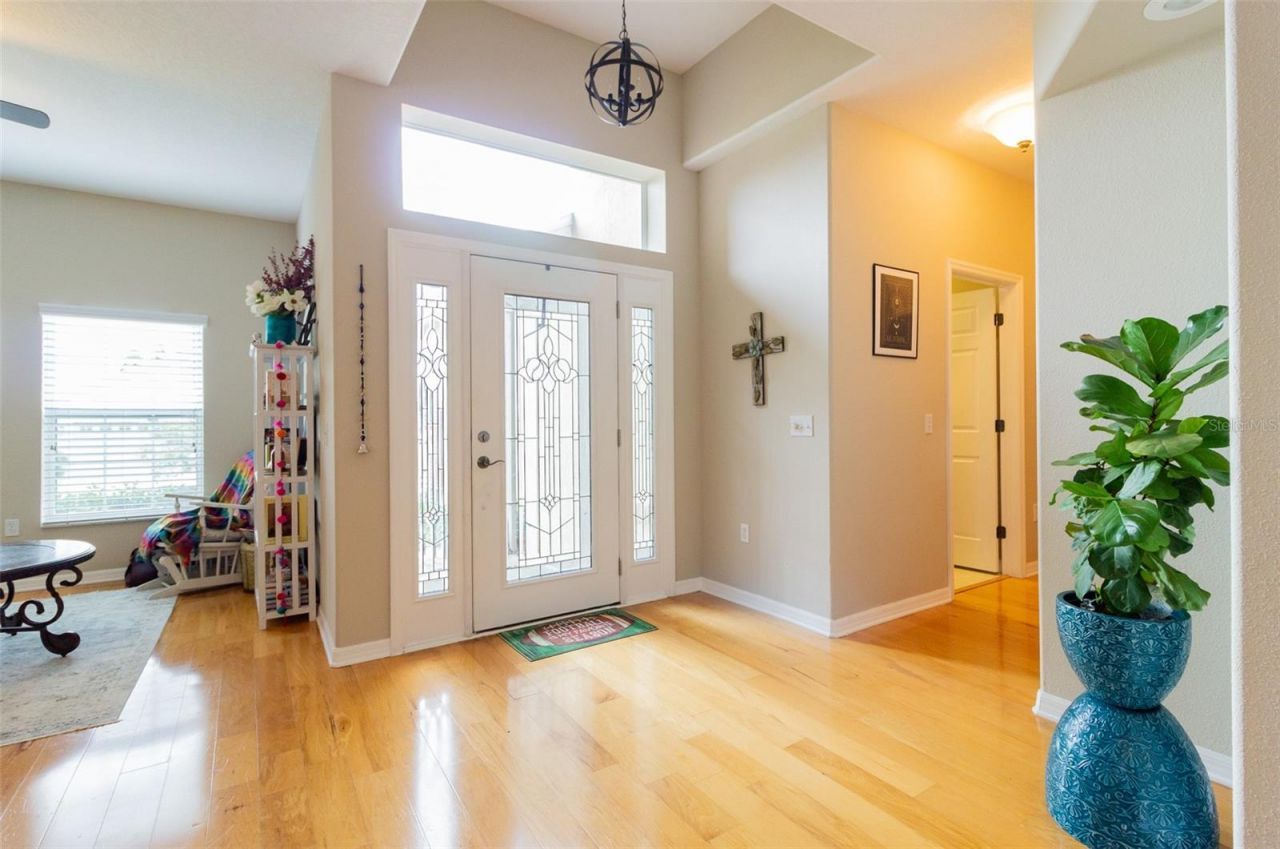 One or more photo(s) has been virtually staged. Located within the 24-hour guard-gated golf community of Eaglebrooke in South Lakeland, this beautifully maintained 3-bedroom, 2-bath Florida Home Designs residence offers comfort, privacy, and a desirable golf-course lifestyle.From the moment you enter, you'll notice the attractive wood flooring that enhances the main living areas. The thoughtfully designed floor plan features formal living and dining spaces, a spacious family room, a split-bedroom layout, and an inside laundry room for added convenience. AC is brand NEW.The kitchen overlooks the family room and includes an eat-in dinette area, ample cabinetry, generous counter space, and a closet pantry - perfect for both daily living and entertaining.The primary suite offers a large walk-in closet, dual vanities, a garden tub, and a separate walk-in shower. Two additional bedrooms provide flexibility for guests, family, or a home office.Step outside to enjoy the screened-in lanai and covered patio with no rear neighbors, creating a private and peaceful outdoor retreat.Eaglebrooke is known for its beautifully maintained surroundings, mature landscaping, scenic lakes, and championship golf course. Residents enjoy 24-hour guarded security and access to club amenities, with optional memberships available for golf, dining, swimming, tennis, and social events.Schedule your private showing today. Photos have been virtually staged to illustrate the home's potential. The property is currently vacant and does not include furniture.