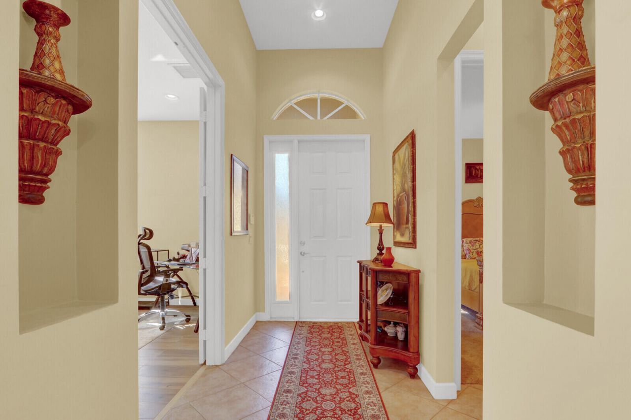 Popular, open floor plan in the PGA Village! with furniture negotiable, and 2 bedrooms plus a large den and 2 baths. The kitchen boasts a newer, top of the line, LG refrigerator and microwave. Granite countertops and 42'' wood cabinets round out this functional kitchen. The spacious main bedroom has 2 large walk-in closets, dual sinks, garden tub and separate shower. Screened patio comes with a grill, table and chairs. The garage has a great epoxied floor. Great opportunity to own a move- in ready home! While the seller prefers to sell furnished/turnkey, the seller is flexible to sell unfurnished as well. Island Club amenities are included in the HOA Fee as is internet, basic cable and lawn care. Golf memberships are optional. Come enjoy the Florida lifestyle in this lovely home!