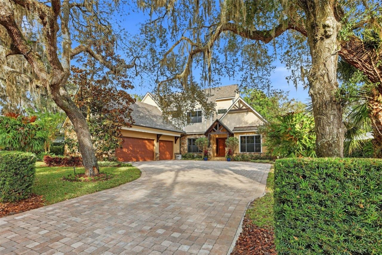 Architecturally refined and thoughtfully designed, this custom built Transitional Craftsman residence blends timeless craftsmanship with modern luxury in the heart of Historic Olde Windermere. Rich wood detailing, exposed pecky cypress beams, and dramatic stonework create warmth and depth throughout. The chef's kitchen is both functional and sculptural, featuring a stone-framed cooking alcove, premium JennAir appliances, custom ceiling-height cabinetry, and a walk-in pantry designed for serious cooks and entertainers. The home offers six bedrooms and six bathrooms, with two main-level owner's suites providing exceptional functionality and privacy. Multiple living spaces are anchored by a striking floor-to-ceiling stone fireplace and beautiful library with rolling ladder, while upstairs bedrooms and bonus room are thoughtfully designed for comfort and quiet, complemented by quality finishes throughout. Recent updates include a newly installed roof (2024), windows (2025), enhancing both peace of mind and long-term value. A spacious three-car garage adds both convenience and functionality. Outdoors, the home transitions easily to an entertainer's retreat with covered porches, fireplace, outdoor kitchen, circular firepit, cabana bath, Tiki hut and lush landscaping. Deeded town resident access to the Butler Chain of Lakes and a prime location within Windermere's vibrant town center with its new re-development complete this rare offering where architectural integrity meets a fun and functional Florida lifestyle.