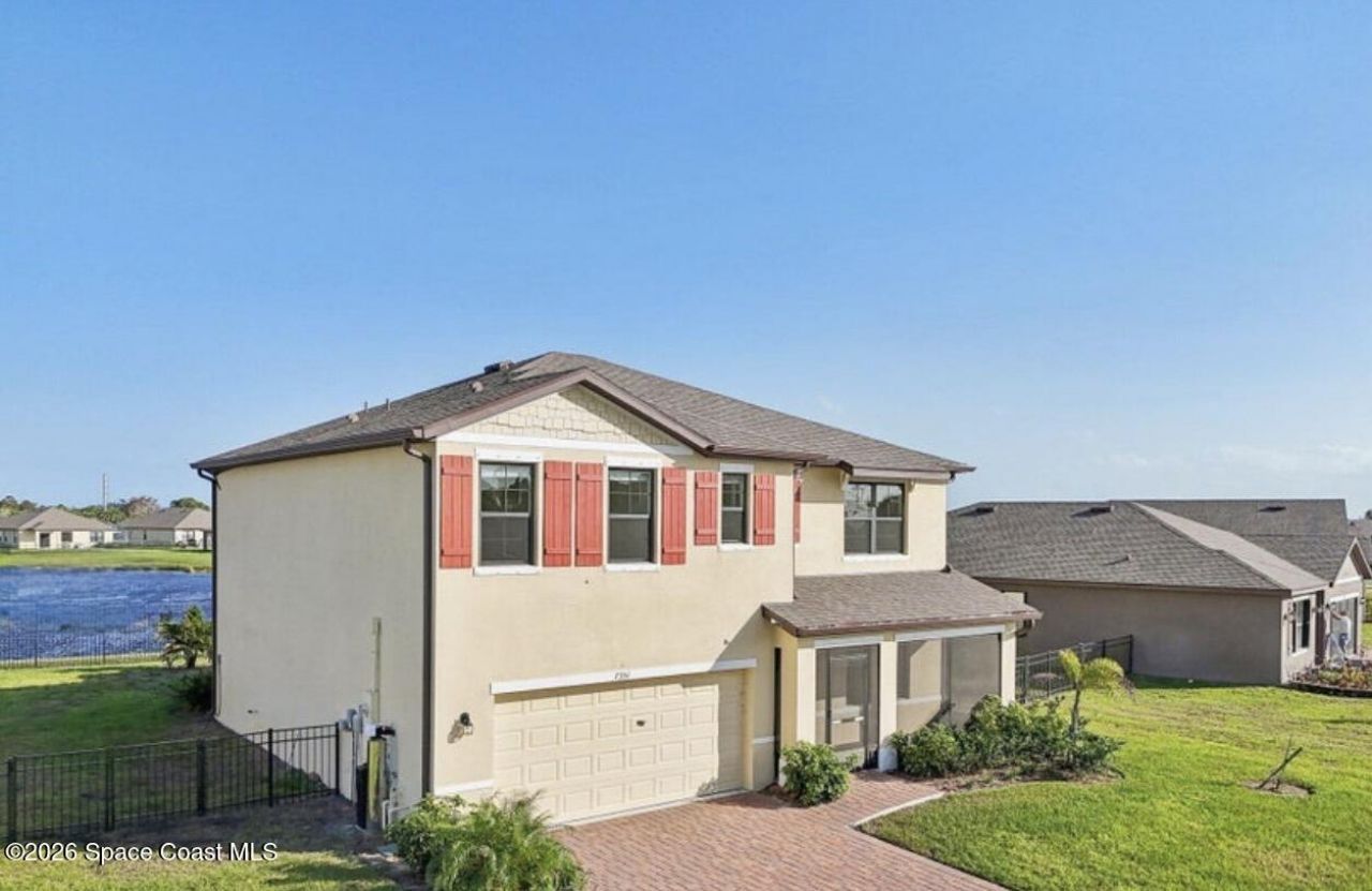Experience the best of Florida living in this lakefront home located in the gated Crystal Bay community. With 5 bedrooms and 3 bathrooms, there is room for everyone while still feeling warm and inviting. A charming screened front patio welcomes you inside to a bright, open layout and a spacious kitchen featuring abundant cabinetry, a large island, breakfast bar, and updated appliances. The main level also offers a bedroom and a versatile flex space ideal for an office, playroom, or gym. The real highlight is the oversized screened back lanai--an incredible place to relax, host gatherings, or simply enjoy peaceful lake views and breezes at the end of the day. The fenced backyard adds privacy and charm. Upstairs, the primary suite features a generous ensuite with walk-in shower, a bonus sitting area, and three additional bedrooms. Extras include a two-car garage, whole-house water filtration, hurricane shutters, gutters, and irrigation, plus great community amenities nearby.