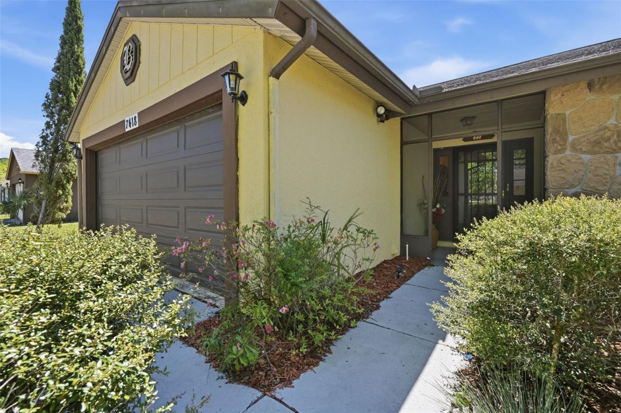One or more photo(s) has been virtually staged. Welcome to 7418 Riverbank Drive, a beautifully maintained 3-bedroom, 2-bath home offering nearly 2,000 square feet of comfortable living in the highly desirable Seven Springs area of New Port Richey.From the moment you walk in, you'll notice the soaring high ceilings and open layout, creating an inviting space perfect for both everyday living and entertaining. Built-in shelving adds both character and functionality, while the spacious living areas flow seamlessly throughout the home.The kitchen is centrally located and ideal for preparing meals and gathering with family, with the dining area conveniently nearby. Just beyond, you'll find a versatile bonus Florida room-complete with its own window A/C unit-perfect for a home office, playroom, or additional lounge space.The primary suite offers a private retreat with a full ensuite bathroom featuring a walk-in shower, while the additional bedrooms are generously sized with large closets and ample storage throughout, including a dedicated linen closet.Step outside and enjoy a peaceful setting with a beautifully maintained yard, plus an extra storage shed for added convenience. Storm-ready metal shutters on most windows provide peace of mind during Florida's storm season, and the garage shelving conveys-making organization a breeze.Location is everything, and this home delivers-just minutes from shopping, restaurants, gyms, parks, medical facilities, and a short drive to Florida's world-renowned Gulf Coast beaches.If you're looking for space, functionality, and a prime location all in one-this is it.Schedule your private showing today and see why this home stands out.