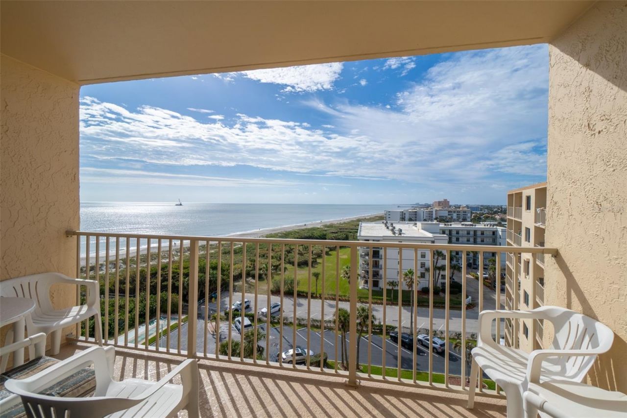 Spectacular Ocean Views in every direction from your new penthouse. A cool beach vibe when you step in the door. Chill on the sofa to watch the waves or the game on TV. The kitchen is ready to cook gourmet meals with white cabinets, solid surface countertop, a pantry, and porcelain sink. Serene primary with king bedroom suite, walk-in closet, and ensuite with glass door shower. The guest room has a view of the ocean, port, cruise ships, and jetty. Luxury vinyl plank flooring throughout, washer and dryer in the condo. Storage on the floor and carport for your car. Canaveral Tower is the best building to view launches, especially the returning rockets, right out the front door of the condo. No building north to block the view. Fully furnished turn-key condo all you need is your beach attire and toothbrush. What a fantastic investment opportunity, a weekly rental complex making it a perfect fit for anyone wanting a beach place with great income potential.