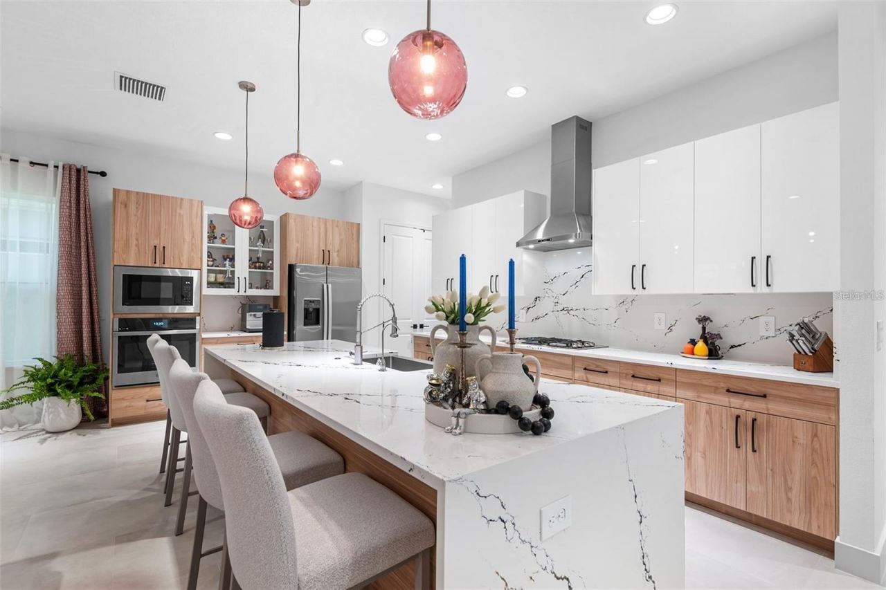 This stunning home, meticulously upgraded to embody luxury, welcomes you with low-maintenance, high-end tile flooring flowing seamlessly throughout. The gourmet kitchen, a chef's dream, boasts top-of-the-line stainless steel appliances, including a built-in oven and gas cooktop, anchored by a massive oversized island adorned with exquisite stone that extends to the matching backsplash. The open-concept design effortlessly connects the kitchen to the dining space and living room, perfect for entertaining guests or enjoying quality time together. Just off the living room, a door leads to a spacious screened-in paver patio, complete with a remarkable outdoor kitchen featuring a beverage fridge, sink, and gas grill, ideal for al fresco dining. The expansive master bedroom serves as a serene retreat, complemented by an ensuite bath showcasing dual sinks, a striking stone countertop, modern fixtures, and a luxurious walk-in shower. Nestled in a vibrant community, this home offers access to an array of amenities, including tennis courts, a pool, clubhouse, shuffleboard, and more, with the added perk of discounted play at the renowned Mystic Dunes Golf Course. Beyond the community, you're just minutes away from dining, retail, entertainment, and the magic of Disney, ensuring every convenience is within reach.