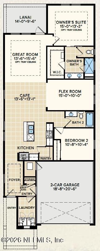 The Cumberland is a thoughtfully designed single-story home offering 1,581 square feet of comfortable and functional living space. With two bedrooms, two bathrooms, a flexible bonus room, and a two-car garage, this floor plan is ideal for those seeking low-maintenance living without sacrificing style or versatility.The open-concept design allows the kitchen to flow seamlessly into the dining area and great room, creating an inviting space for everyday living and easy entertaining. The flex room adds valuable versatility and can serve as a home office, hobby room, or cozy den. The private primary suite is tucked away to provide a peaceful retreat, complete with a well-appointed bath and generous closet space.This particular home features impressive 10-foot ceilings, a tray ceiling in the great room, white cabinetry, quartz countertops, and added cabinetry in the laundry room for extra storage. A paver driveway enhances curb appeal and adds to the home's overall charm. Located in the vibrant 55+ community of Reverie at TrailMark, residents enjoy a lifestyle centered around connection, recreation, and relaxation in a beautifully designed setting.