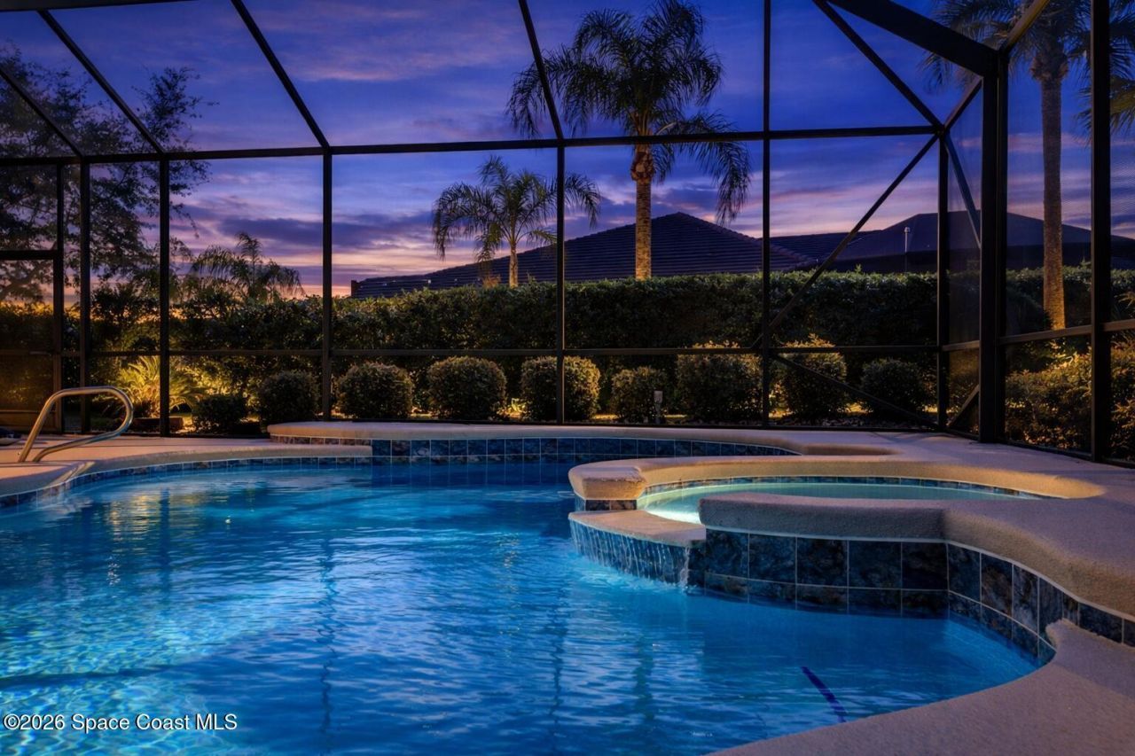 Welcome to this exceptional Arthur Rutenberg home in the 24-hour guard-gated community of Baytree in Suntree. Built in 2001 and offering 3,203 square feet, this beautifully updated residence features 4 bedrooms, 3 bathrooms, a dedicated private office, and a spacious bonus room complete with a pool table -- ideal for entertaining or extended living. The desirable split floor plan includes a private wing with bedroom, full bath, double closets, bonus room, and direct pool access, allowing it to be closed off for multi-generational living or an in-law suite. From the moment you arrive, elegant double front doors with new glass inserts open to a designer foyer chandelier and refined architectural details, including 10-foot ceilings, crown molding, 6-inch baseboards, custom cedar tray ceiling, and triple pocket sliders that create seamless indoor-outdoor living. Five separate access points lead to the lanai, enhancing the homes open flow. The chefs kitchen is beautifully appointed with quartz countertops, modern backsplash, new sink and faucet, white cabinetry with lazy Susan, pull-outs and pantry storage, stainless steel appliances including a 5-burner gas range, center island, breakfast bar, and eat-in nook. The primary suite offers real wood flooring, dual quartz vanities, soaking tub, walk-in shower, plantation shutters, and updated fixtures. Secondary and guest baths have also been thoughtfully renovated with updated vanities, quartz counters, lighting, and mirrors. Updated lighting and ceiling fans are found throughout the home. Designed for true Florida living, the gas-heated saltwater pool and spa were resurfaced and retiled in 2022 and are set within a 2021 rescreened lanai featuring an outdoor kitchen and privacy hedging. The space offers both beauty and functionality for year-round enjoyment. Major upgrades include a 2023 tile roof, dual A/C units (2015), 72-gallon gas water heater (2015), Culligan whole-house water treatment system, full accordion hurricane shutters including the lanai, added attic insulation with pull-down ladder, leak detection pads under sinks, and Miami-Dade rated garage doors. The three-car garage is enhanced with Swiss Trax flooring, overhead storage, side-door access, and a Mitsubishi mini-split A/C system. Located in one of Suntrees most desirable gated communities and convenient to shopping, dining, beaches, and top-rated schools, this meticulously maintained home offers the perfect blend of luxury, flexibility, and Florida lifestyle living.