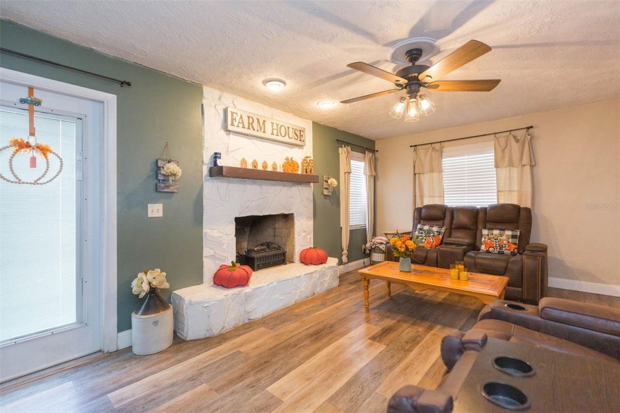 Step into this inviting single-family home offering 3 spacious bedrooms, 1 full bath and a half bath with a spacious Farm style designed living space. Perfectly blending style and functionality, this residence features an open floorplan ideal for both relaxing and entertaining, ceiling fans throughout, solid wood cabinetry, and a cozy fireplace. The wood-burning fireplace adds warmth and character, making this property truly special. Located in the heart of Seffner, you'll enjoy convenient access to local amenities, major roadways, and all that Central Florida has to offer. NO HOA or CDD