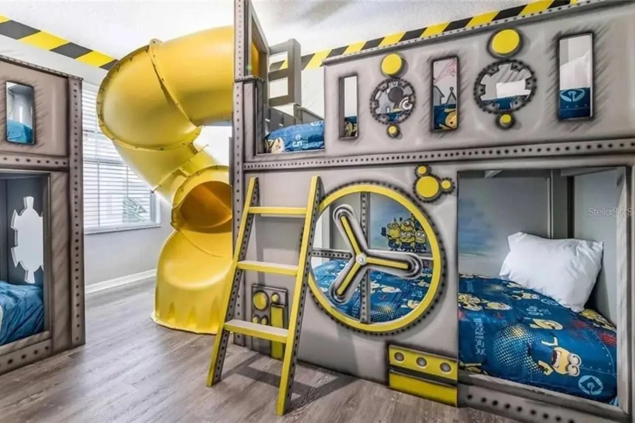Welcome to this exceptional six-bedroom resort home located just minutes from Walt Disney World in the highly desirable, gated Emerald Island Resort. Designed for comfort and entertainment, this fully furnished property features four spacious KING bedrooms, multiple entertainment spaces including a private movie theater, arcade area, gaming loft, and a billiards lounge with air hockey. This exceptional property is being offered with over $150,000 in custom furnishings and premium upgrades, making it truly turnkey for the next owner. Professionally designed and thoughtfully appointed throughout, every detail reflects quality and comfort. In addition to its stunning presentation, the property is a proven income producer, generating $124,000 in profits in 2025 alone - an outstanding opportunity for both lifestyle and investment buyers.The fully updated kitchen offers new appliances and an eat-in island, perfect for gathering with family and guests. Step outside to a covered, fully screened pool deck with a large private swimming pool and slide, creating the ideal outdoor retreat with minimal bugs and year-round enjoyment.Emerald Island Resort offers outstanding amenities, including a lakeside clubhouse with a resort-style pool and tiki bar, hot tub, fitness center, sauna, mini golf, tennis and basketball courts, playground, and more. An ideal primary residence, vacation home, or income-producing short-term rental opportunity in a prime Central Florida location.