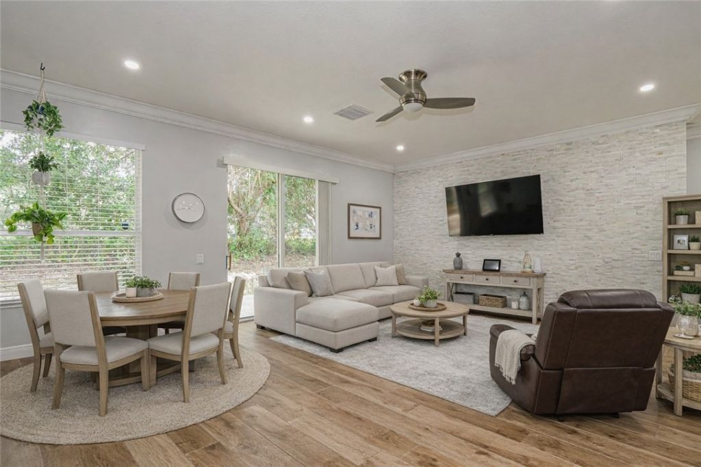 Peace of mind included in this updated 4/2 2 car garage. Major improvements include new roof, updated plumbing, new AC, insulation and fresh paint inside. Interior highlights include wood-grain tiled flooring, crown molding throughout, 10ft ceilings offering an open & bright living space with a striking stone accent wall.Kitchen includes granite countertops, tiled backsplash, soft close cabinets as well as stainless steel appliances. Sliding doors open to a paver patio great for entertaining and BBQs. Low HOAs include lawn care, irrigation and exterior pest control. Close to beaches&shopping!