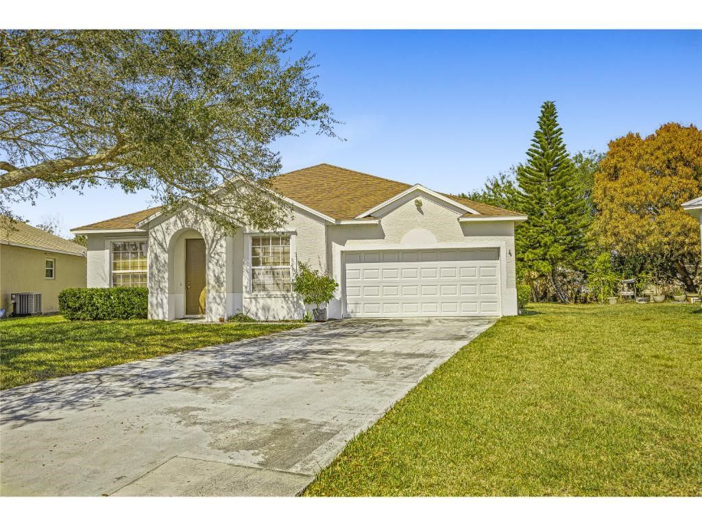 Tucked in the rear of the quaint neighborhood of Chase Meadows on a cul-de-sac, this home features over 2,200 sq ft of living space with 3 bedrooms, 2 baths, a spacious den/office that could easily be used as a 4th bedroom, plus an addl 10x9 indoor storage room! Recent updates include a new roof (2020), garage door (2021), water heater (2021), & a new Stainless refrigerator installed in 2025. Home offers full hurricane shutter protection & the only wood burning fireplace in the community! Low HOA fees of $202/month include lawn care. $7,500 flooring/paint credit w/ acceptable offer.