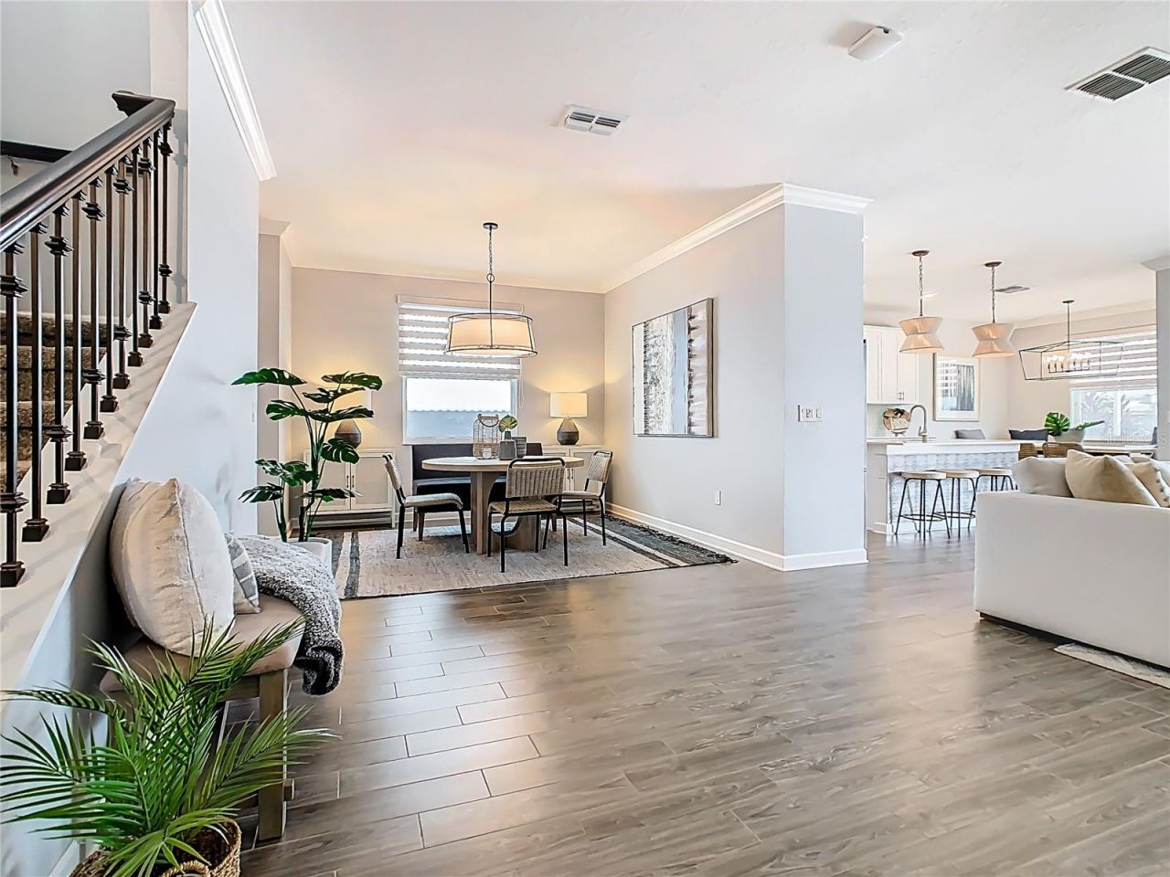 Beautifully UPGRADED and impeccably maintained by current owners, this stunning 6 bed 4.5 bath POOL HOME with IN LAW SUITE, boasts pretty pond views with impressive water fountain! Located in the quiet, residential Country Club section with access to its own exclusive clubhouse and amenities. The recent upgrades include NEW screened, heated, saltwater pool and 8 person spa with sun shelf, water features, oversized paved deck and covered lanai - perfect for entertaining and relaxing. NEW exterior and interior paint, including kitchen cabinets. Upgraded lighting and ceiling fans. NEW built in feature wall and entertainment center. NEW built in banquet bench seating in breakfast nook. The floor plan flows beautifully throughout this bright and airy home - the In Law suite not only has separate access, but also its own 1 car garage. As a resident of this highly sought after Championsgate resort-style, gated community, you'll have access to the Oasis Club, a 14,000 sq ft clubhouse featuring a restaurant, movie theater, fitness center, game room, tiki bar, lazy river, cabanas, and more. The exclusive Plaza offers a second restaurant, bar, fitness center, game room, pickle ball courts, and two pools, while the newly opened Retreat Club boasts a full waterpark. The HOA includes access to all these amenities, FULL GOLF AND TENNIS memberships, pickle ball, a $75 food credit at The Plaza, gated entries, complete lawn care, security monitoring, cable, phone, and internet. CDD and trash services are included in the taxes. ChampionsGate Country Club offers the ultimate resort lifestyle, perfectly situated near Orlando's theme parks, world-class golf, shopping, and fine dining. Don't miss your chance to live this elite Florida lifestyle in this fabulous home!