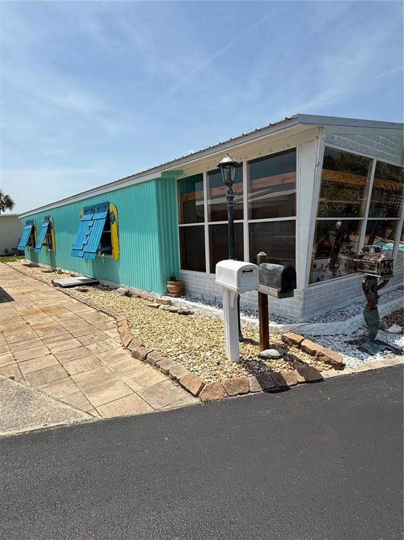 An artist retreat on the beachside! This two bedroom, two bath free-spirited home is the artist's canvas! The interior is painted in fabulous colors and unique details. The living area is open to the enclosed porch, allowing for a nice flow. This is truly a home you would need to see to appreciate. Handcrafted shutters and intricate fence on the exterior reflect the owners' style. Painted flooring throughout for easy beach living! Enjoy you morning coffee in the Florida room before walking or riding over to the beach or to the Intracoastal to fish. Surfside Estates is a resident owned co-op community, located along the Intracoastal Waterway, just across the street from the beach and where you own your lot-share and never pay rent. The community has a low maintenance fee of $220 each month that includes cable TV, high-speed internet, lawn service, heated saltwater pool, two fishing piers and clubhouse. The clubhouse has a kitchen, pool tables, TV, library, fitness center and shuffleboard. Along the Intracoastal, you will find a screened gazebo, fire pit, barbecue, benches, horseshoe pits, the two partially covered fishing piers, kayak racks and launch. With an active Social Club, you can choose from yoga, pool aerobics, an ice cream social, Bingo, pool teams, card tournaments, karaoke, dances, community breakfasts, potluck dinners, and so much more! Or take a walk, ride your bicycle, drive your golf cart around the friendly neighborhood. Either way, there seems to be something for everyone.