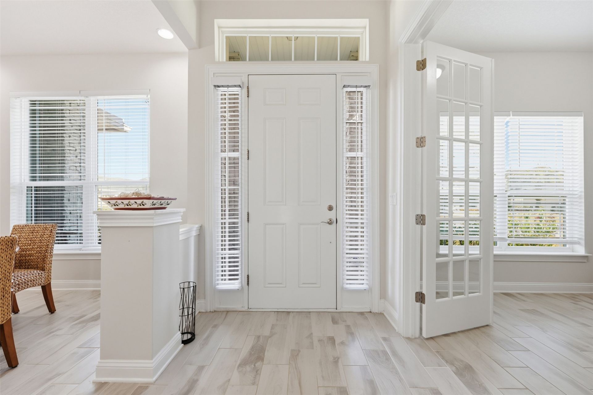 Welcome to this sought after gated community of Sandy Pointe Preserve. This 2020 built split floor plan home offers 3 bedrooms, 2 baths and a dedicated home office. The gourmet kitchen features an oversized island with seating, great for entertaining. The great room has 11' ceilings and an expansive three panel cascading slider opening to a covered patio with motorized screens making it preface for year round enjoyment. Private primary suite with dual vanities, a frames shower, a large garden tub and 2 walk-in closets. Upgrades include custom window treatments, ceiling fans throughout, tray ceilings, a fully fenced back yard, finished laundry room with cabinets and butcher block counters, 3 car garage with built in shelving and gutters. Much utilized mud room leading to garage with built in bench with hooks and cubbies creates a great drop zone. Hunter sprinkler system. This home is conveniently located for is accessibility to shopping and restaurants and recreation. Only 10 minutes to the sandy beaches of Amelia Island and Historic Fernandina Beach downtown and top-rated schools.