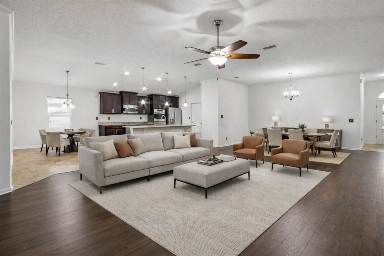 Welcome to this well-maintained 4-bedroom, 4-bath home tucked away on a desirable cul-de-sac street lot. Offering a flexible bonus space that can easily function as a 5th bedroom, office, or flex room. This home provides plenty of room to fit your lifestyle. Recent updates include fresh interior paint in the downstairs living areas and all bedrooms, along with upgraded LED lighting throughout for a bright, modern feel. The home sits on an oversized quarter-acre lot with a fully fenced backyard, screened paver patio, and a spacious three-car garage. The kitchen features granite countertops, dark cabinetry, stainless steel appliances, a large prep island with pendant lighting, and 2 dining areas. The owners retreat is generously sized with tray ceilings, a walk-in closet, and a private bath complete with dual vanities, a soaking tub, and separate shower. Newly enhanced landscaping adds beautiful curb appeal. Located in Amelia Concourse Subdivision featuring a pool with water slides and a playground. Convenient to highly rated schools, shopping, hospitals, dining, 9 miles to the beach, and 8 miles to 95. Don't miss your chance to own your own piece of paradise here in Fernandina Beach!