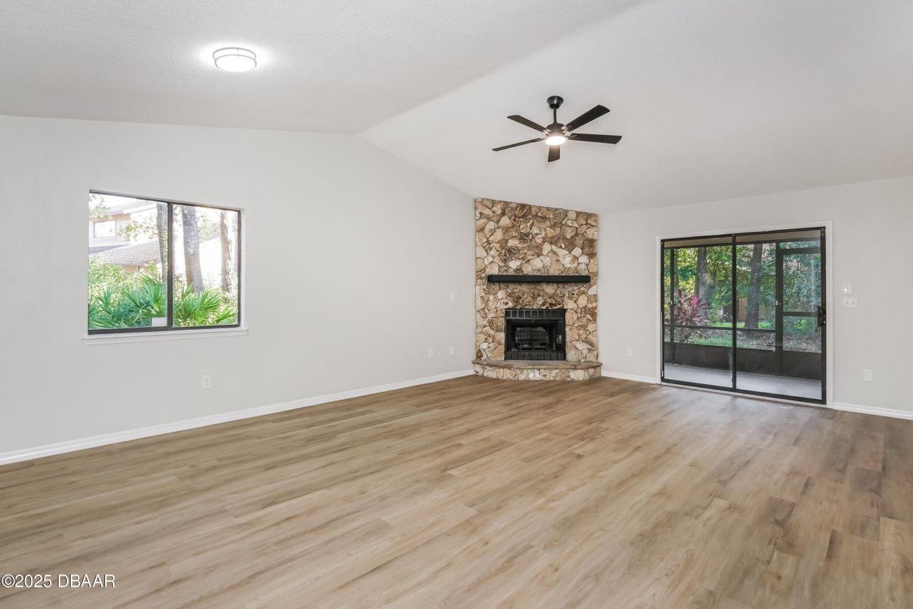 Beautifully updated 3 bedroom, 2 bath duplex featuring full interior paint, new LVP flooring, updated light fixtures, stainless appliance package (range, microwave, dishwasher), new quartz counters, new carpet, bathroom refresh, and a brand-new HVAC. Enjoy vaulted ceilings, ceiling fans, a rock fireplace, and a screened patio. Move-in ready!