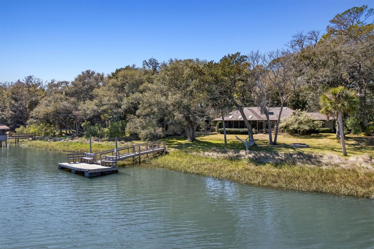 Rare one-acre WATERFRONT estate with panoramic marsh views that stretch to historic downtown Fernandina Beach, bring your BOAT & RV! Set within Pirates Wood, this updated one-level ranch is layered with character and coastal charm. Designed for effortless living, the interior emphasizes flow and rich texture, featuring wood-look tile, upgraded Anderson windows, recessed lighting, and a wood-burning fireplace with built-ins that anchor the main living space with warmth and architectural presence. Outdoor living is a true extension of the home. The expansive screened lanai blends indoor and outdoor spaces. The extended patio with spa and cabana is made for quiet evenings or entertaining. Towering mature oaks frame the grounds, leading to a firepit area and private dock, the idyllic setting for front-row access to sunrises, shifting tides, and the soft glow of downtown across the water. The kitchen balances charm and functionality with pine cabinetry, all-new stainless steel Whirlpool appliances, a spacious pantry, and a light-filled breakfast nook with command center. The primary suite has been reimagined, with new lighting, 2 walk-in closets with custom built-ins, and a renovated en suite bath with a new tile shower, soaker tub, dual vanities, and skylights. A flex room with closet can serve as a private office or fourth bedroom. Additional highlights include a powered storage shed, renovated 2-car garage with new door and Shark coating, and a brand-new RainSoft water system and water heater. Residents have access to community amenities, including a boat launch, pool, clubhouse, playground, basketball court, and DEEP WATER dock, completing a lifestyle defined by acreage, waterfront living, and truly exceptional views.
