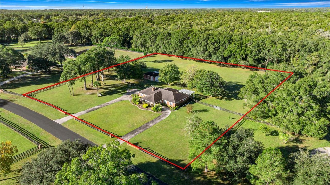 Beautiful COUNTRYSIDE FARMS OF OCALA, a wonderful Equine Community, just off Hwy 200. This mini-farm of 3.41 acres, fenced, featuring a brick house of 2,190 sq ft and a detached 2 cars garage/workshop. Just 20 minutes from WEC-World Equestrian Center and 20 minutes to Historic Downtown Ocala, this location is privileged. As you get to the property you'll appreciate the circular driveway, the front lawn, the garden and the very convenient drive thru front porch. The house is kept in an excellent condition: custom working wood burning fireplace with built in bookcases, ceramic tiles thru out living spaces and carpet only in the 3 bedrooms, crown molding and great finishes, all new LED lighting, screened Florida room/rear porch with hurricane shutters, a pergola and 2 cars garage. Roof May 2011, Carrier A/C-heat pump August 2021, Electric Water Heater 2024, Washer & Dryer 2021, Dishwasher 2021.
